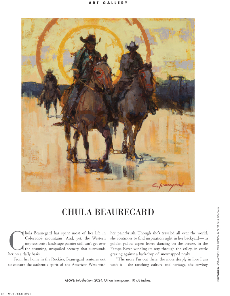 Almost 18 months ago, I got an email out of the blue from Dana Joseph, the Deputy Editor at Cowboys & Indians Magazine. She said she had been watching my work for a long time, and she wanted to feature me in the magazine sometime in 2025. Of course I was honored and delighted. During the process, I had the pleasure of speaking to freelance writer Sarah Kuta for the interview. She wrote this article, which is in the October 2025 edition of Cowboys & Indians.